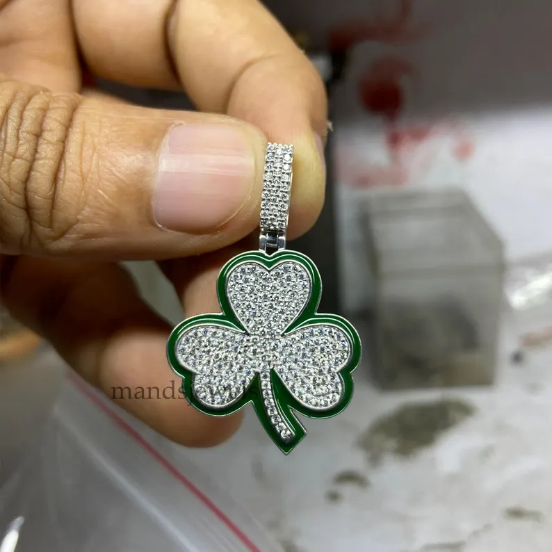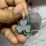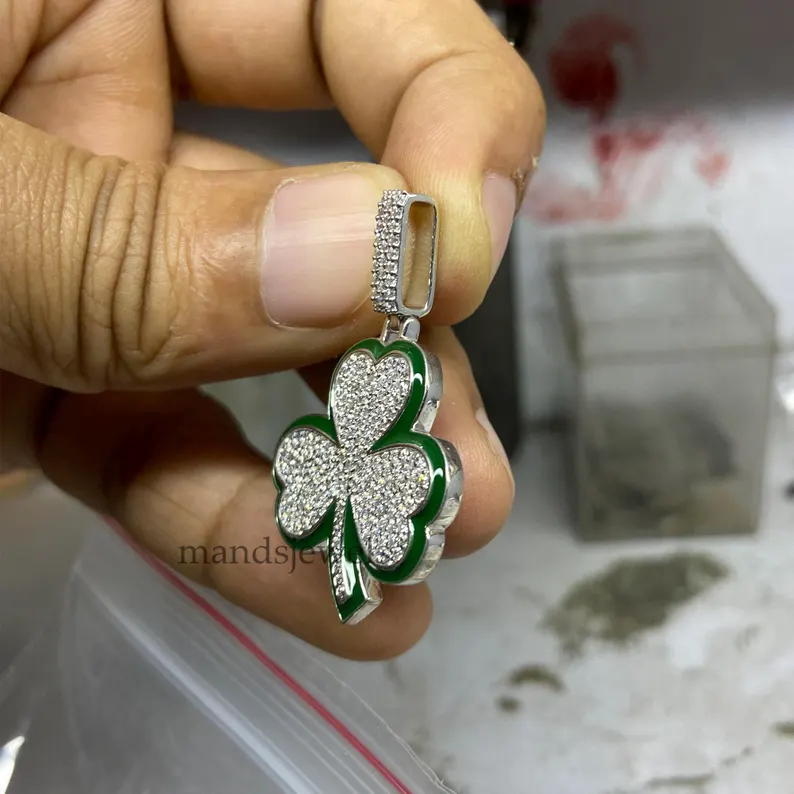 14K White Gold Plated Real Moissanite 1.70ct Three Leaf Clover Pendant For Unisex.