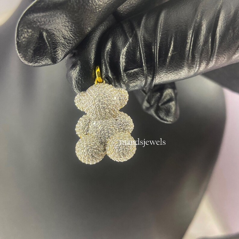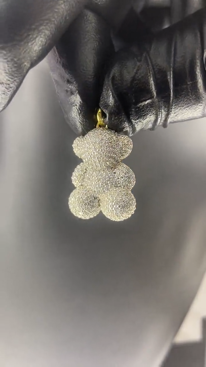 1.5 Ctw Moissanite 925 Sterling Silver Teddy Bear Pendant, Simulated White and Yellow Diamond, 14k Yellow gold Plated Teddy Bear Pendant.